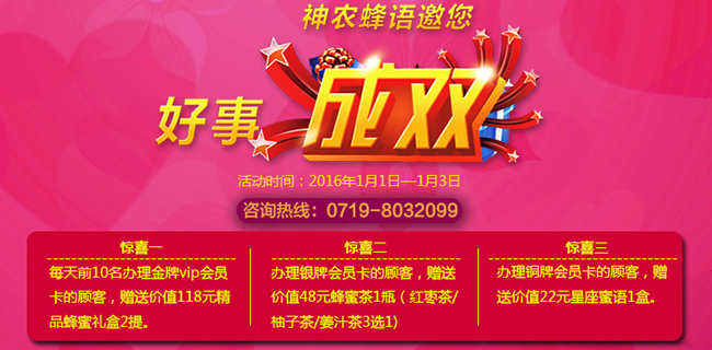 打開神農(nóng)蜂語微信sysnfy,點擊“微信商城”一次性原價購物滿180元,支付成功,點擊“申請推廣員”,1-2天內(nèi)審核完畢,即可成為VIP會員,尊享購物9折。元旦加入,每天前10名即送118元J品裝蜂蜜禮盒2提