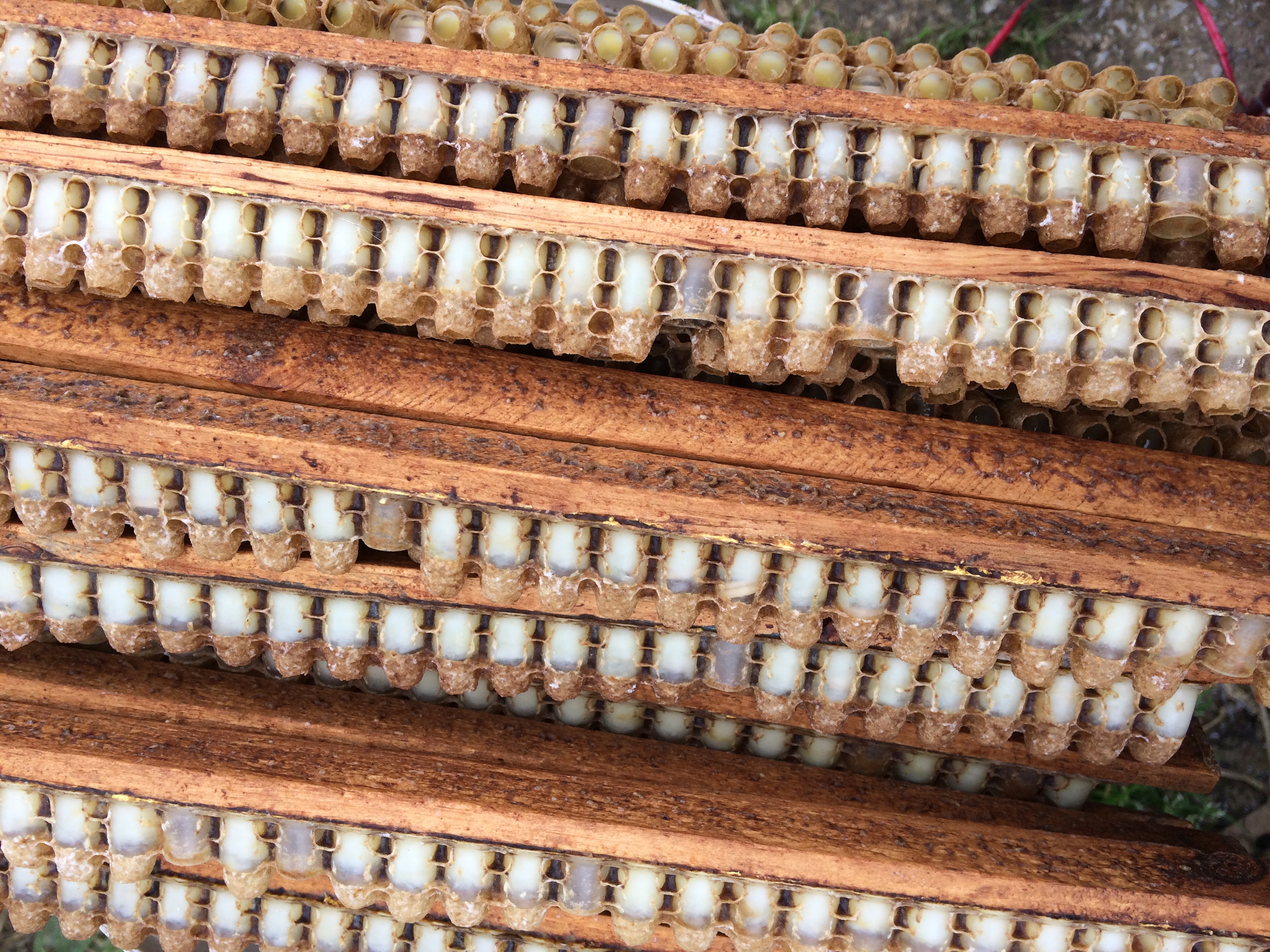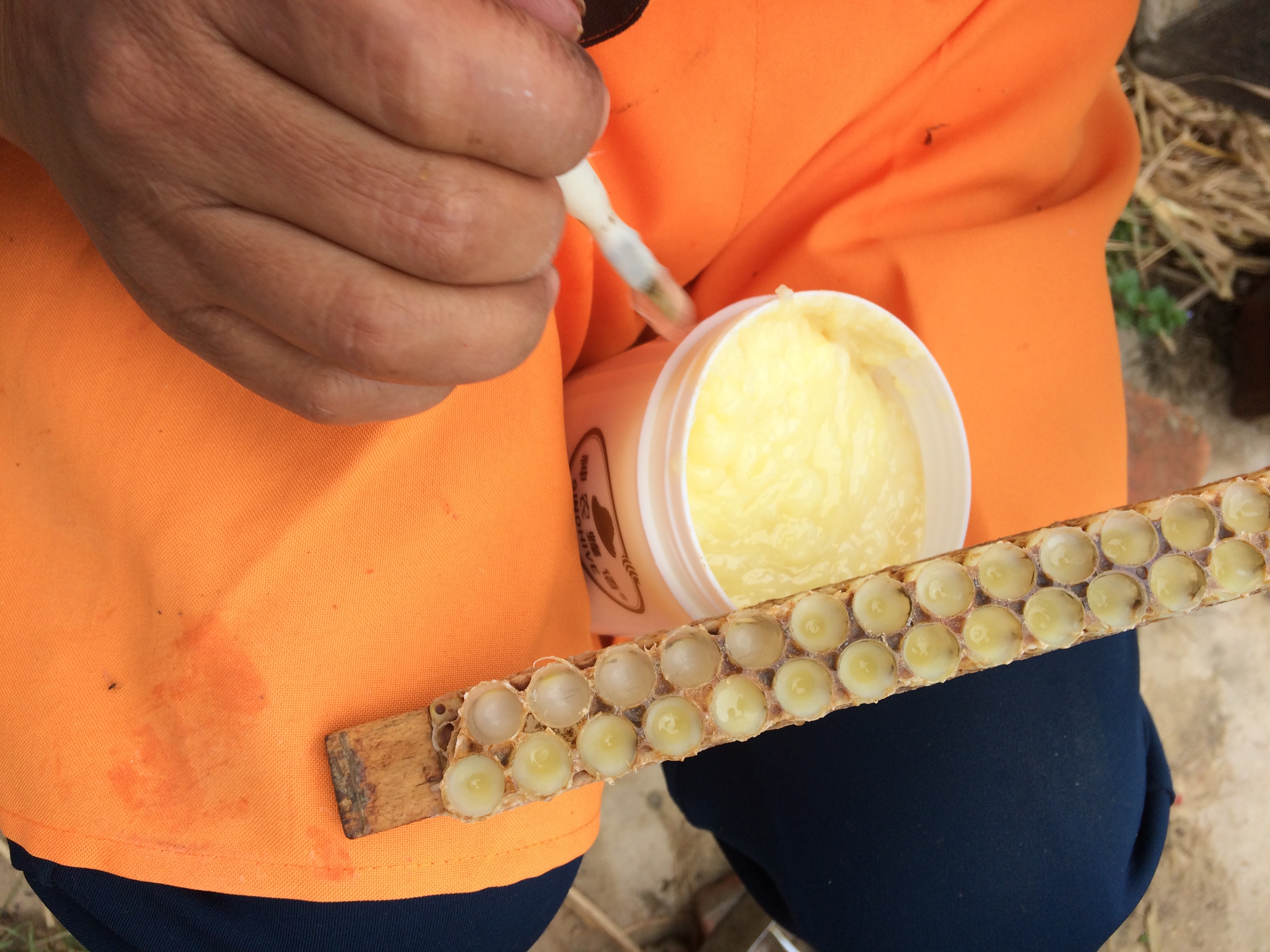 以上這么多王臺(tái)中的王漿,也僅能勉強(qiáng)夠裝兩瓶的量。因?yàn)橥鯘{含量J少,蜂農(nóng)自己幾乎是舍不得吃的,但對(duì)孩子卻舍得。我們?nèi){的蜂農(nóng)說,孩子從小吃蜂產(chǎn)品,長(zhǎng)到十八歲沒打過吊針。講的時(shí)候,一臉驕傲。