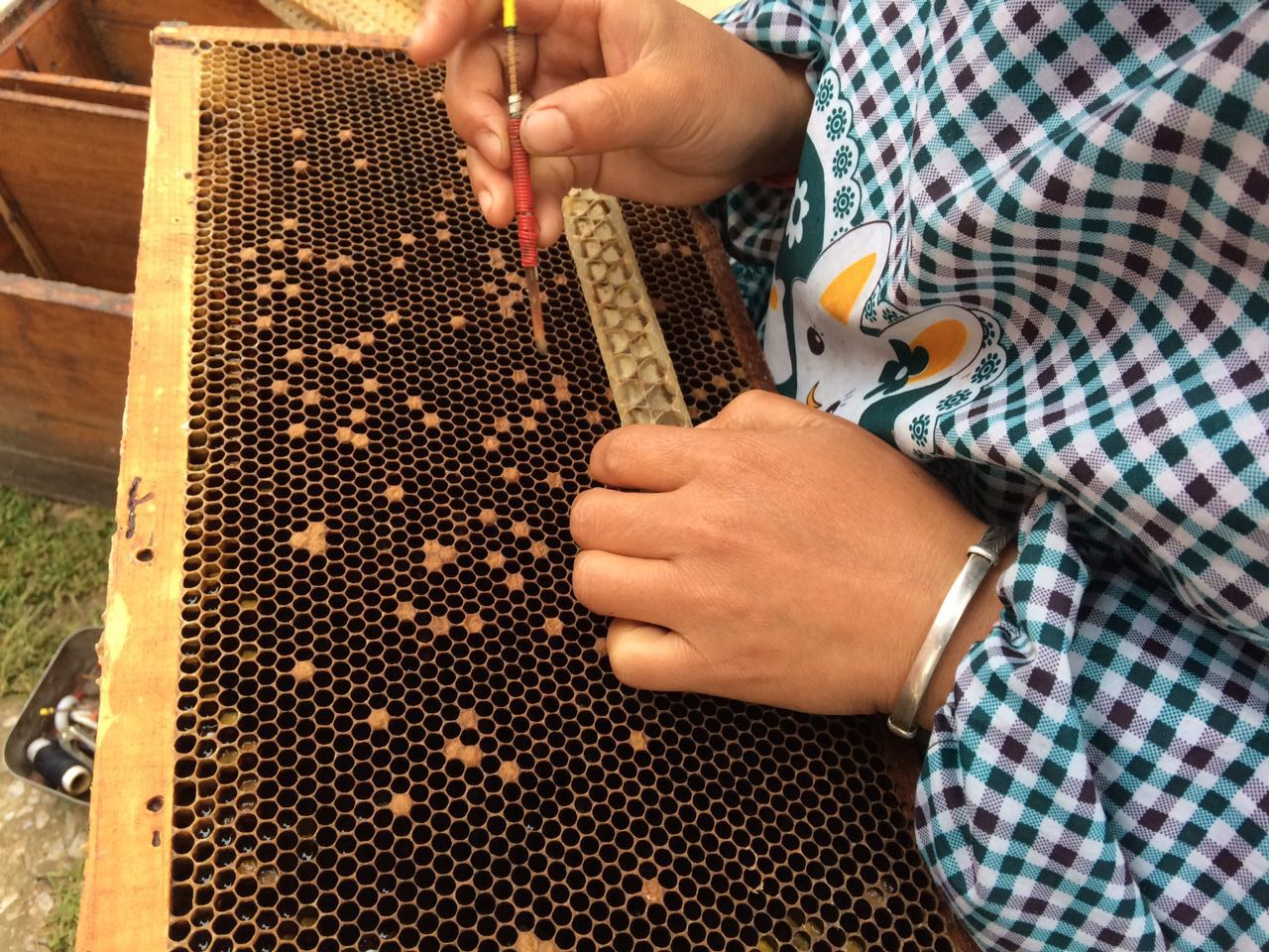 蜂農(nóng)在進(jìn)行移蟲工作