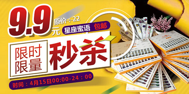 原價22元的星座蜜語條裝蜜,4月15日(本周六)當(dāng)天只需9.9元即可購買并且享受包郵!限時1天,限拍一份!