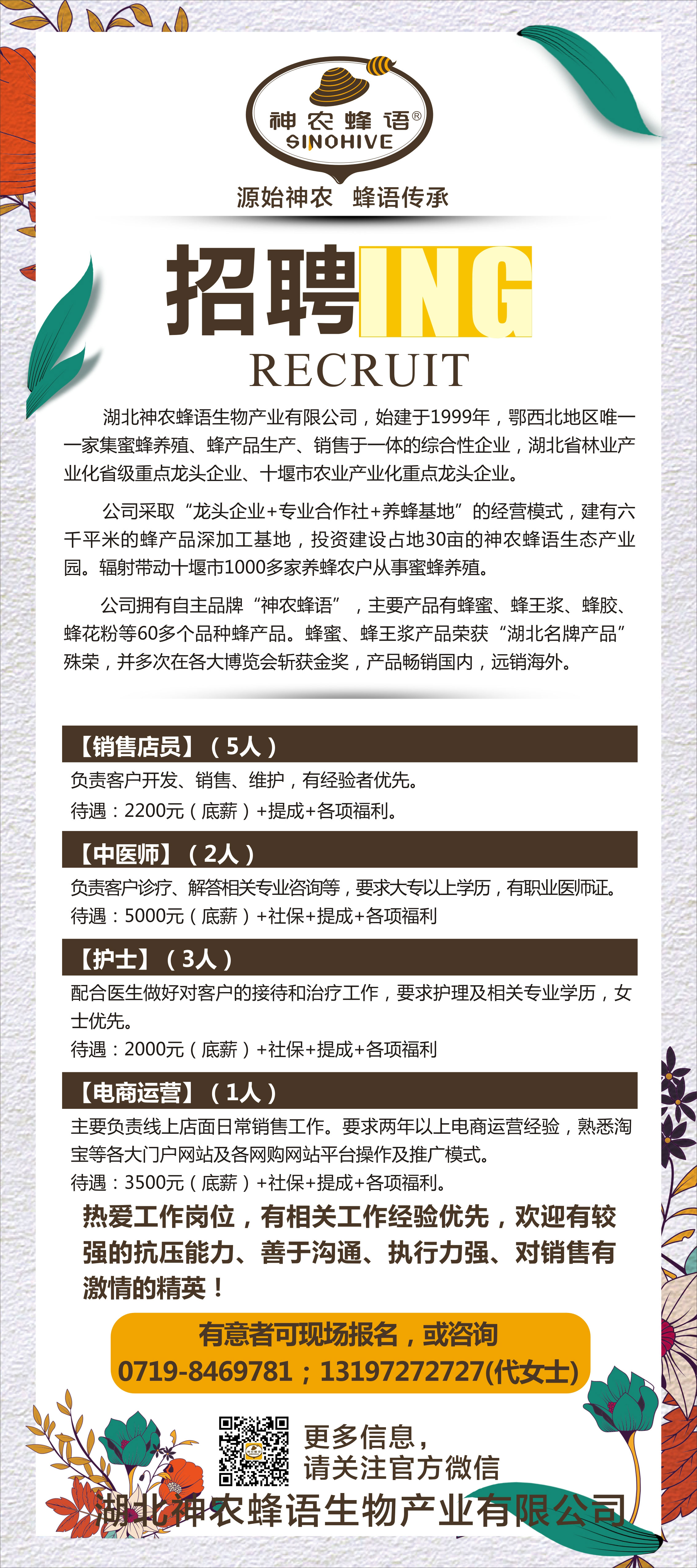 因企業(yè)發(fā)展需要,神農(nóng)蜂語需要以下人才: