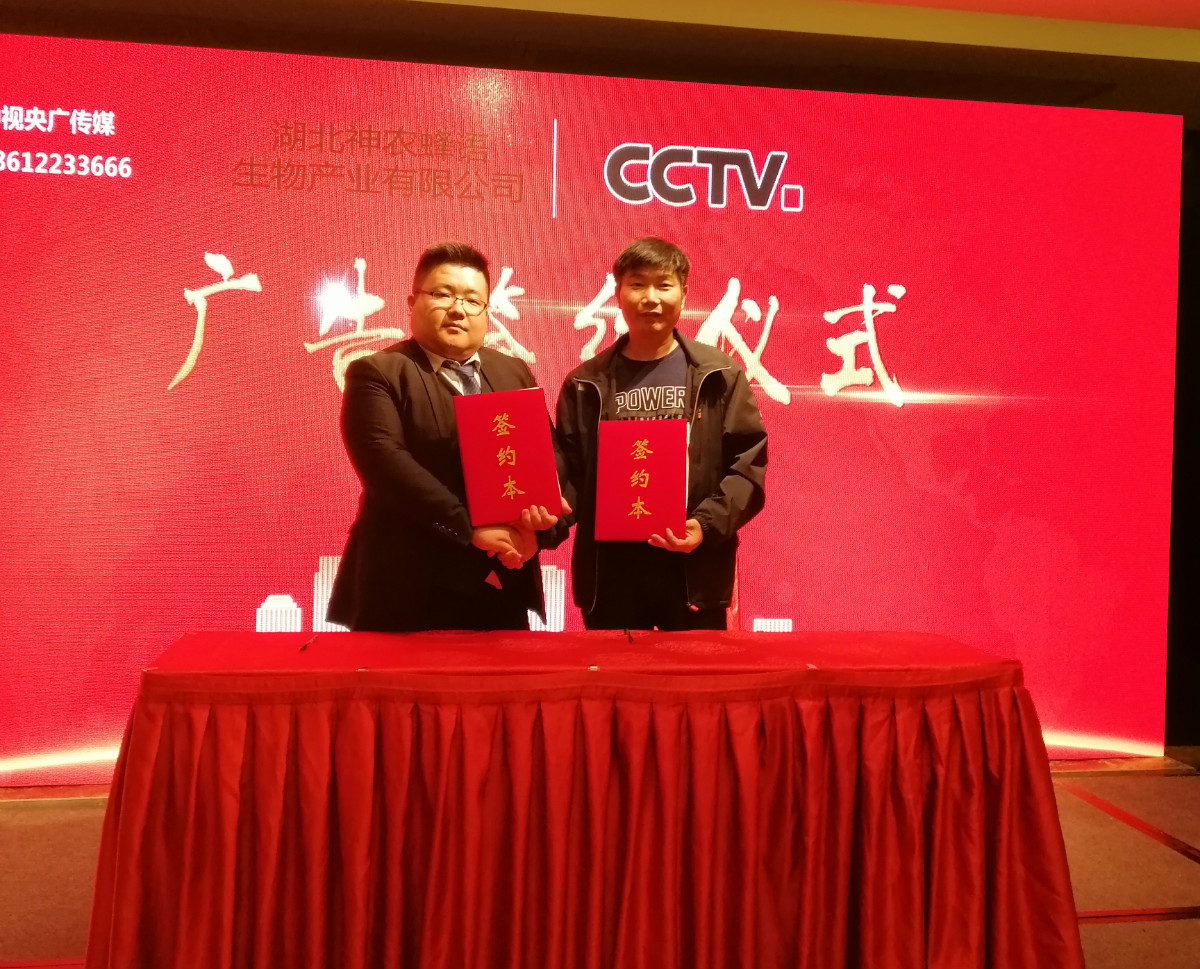 4月12日,公司總經(jīng)理宋學(xué)喜代表神農(nóng)蜂語與中視央廣(武漢)傳媒有限公司在武漢歐亞國際會展酒店簽約在央視上投放廣告。