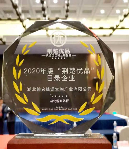 經(jīng)企業(yè)申報、地方推選、專家組評審、廳長辦公會審議和網(wǎng)上公示等程序,2020年“荊楚優(yōu)品”目錄于去年12月由湖北省商務廳確定,全省共列入100家企業(yè)產(chǎn)品,湖北神農(nóng)蜂語生物產(chǎn)業(yè)有限公司出品的蜂產(chǎn)品(蜂蜜、蜂膠等)進入該目錄。
