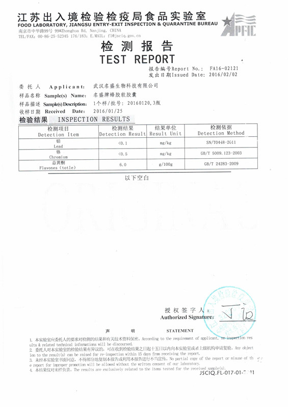 注:湖北神農(nóng)蜂語(yǔ)生物產(chǎn)業(yè)有限公司委托武漢名盛生物科技有限公司生產(chǎn)蜂膠軟膠囊。