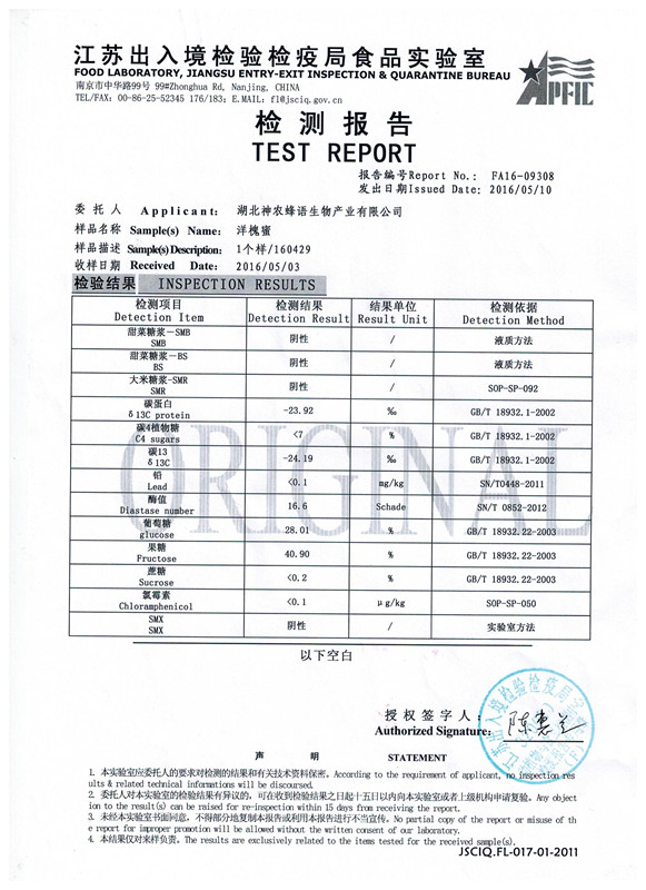 洋槐蜜檢測(cè)報(bào)告(2016-5-10)