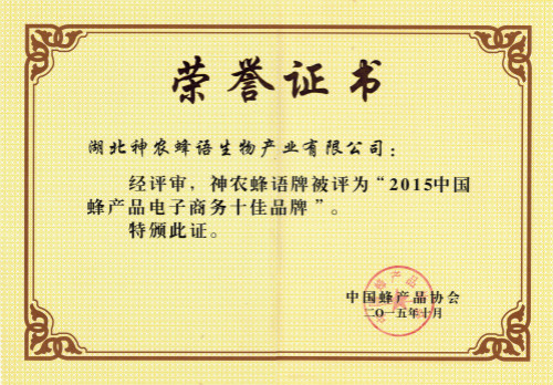 神農(nóng)蜂語被評為“2015中國蜂產(chǎn)品電子商務(wù)十佳品牌”