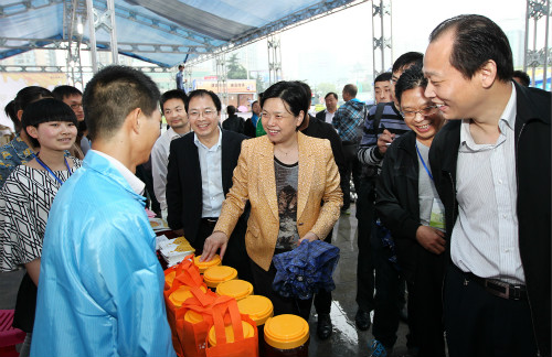 中共湖北省委常委、原十堰市委書記周霽(中)助銷神農(nóng)蜂語產(chǎn)品