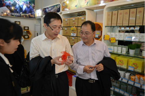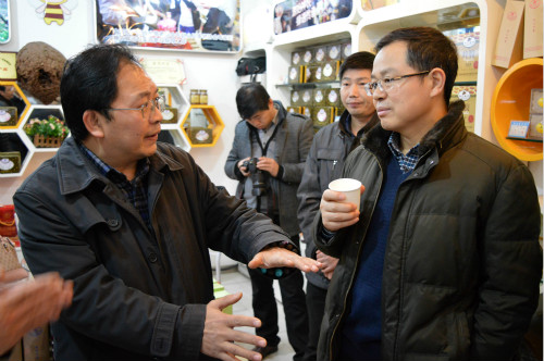 中國蜂產(chǎn)品協(xié)會副會長趙小川(左)到神農(nóng)蜂語專賣店指導(dǎo)工作